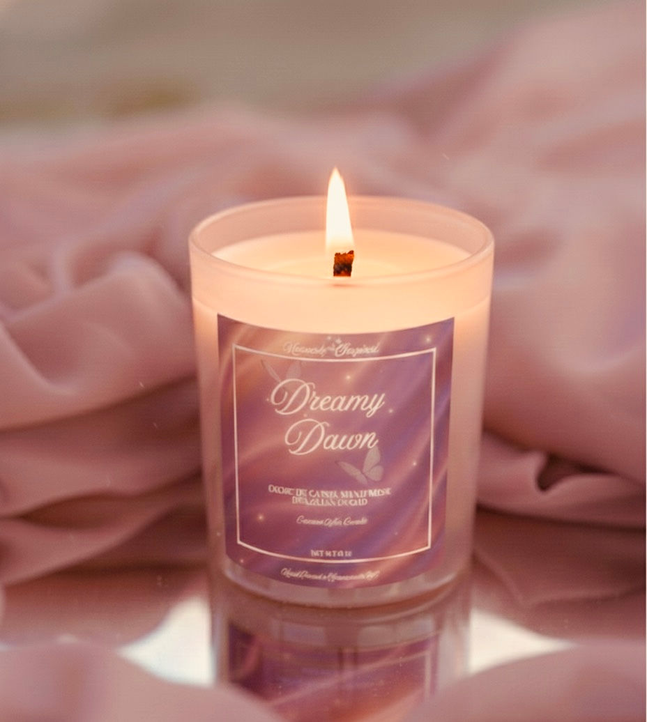 Mesmerizing glass vessels reflect the golden Heavens like jewels, while the soft scent of velvet-petaled roses and warm vanilla drifts into the creamy coconut skyline.